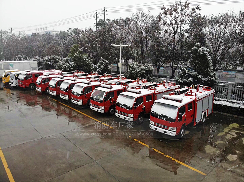 今天;我要發(fā)的是7臺小型東風(fēng)水罐消防車、載水量2.5噸、配20消防泵、20消防炮、射程也可達(dá)50米;雖說噸位比較小。但是全部都是國標(biāo)標(biāo)準(zhǔn)的配置、所需要的隨車消防器材也是一樣不少、這批水罐消防車是發(fā)往甘肅張掖的、算上路上跑的時間、剛好是富余幾天到交貨期;客戶那邊也給予了充分的理解、可以等雪小了之后再出發(fā)、防止路上上凍結(jié)冰不好走。
