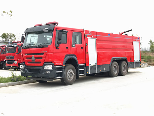 該款車輛此采用重汽后八輪底盤打造而成,車車身長寬高尺寸可達10655×2500×3540mm;JDF5314GXFPM160型泡沫消防車、采用重汽豪沃ZZ5347V4647E1底盤改裝而成。整車由消防員乘員室和車身兩大部分組成,乘員室為單排改雙排,可乘坐2+4人,該車為外露罐結構,車身前部為器材箱,中部為水罐,后部為泵房。載液罐體為優質碳鋼,與底盤采用彈性連接,載水12780kg(PM160),泡沫液量2770kg(PM160),裝備了上海雄真消防設備有限公司生產CB20.10/30.60型中低壓消防泵,額定流量60L/S,車頂安裝成都威斯特消防機械有限公司生產的PL48(PM160)型車用消防炮。、