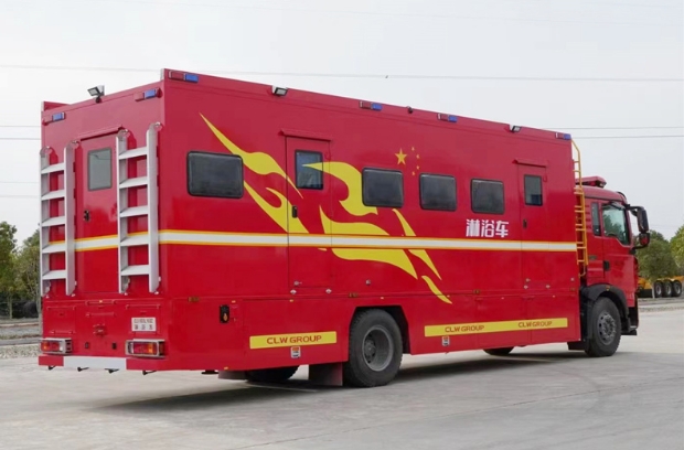 淋浴車屬于廂式專業(yè)作業(yè)車的一種,主要由底盤和上裝部分兩大總成組成。上裝部分由箱體、副車架、裙邊儲(chǔ)物艙、電氣系統(tǒng)、水路系統(tǒng)和附屬設(shè)備組成。